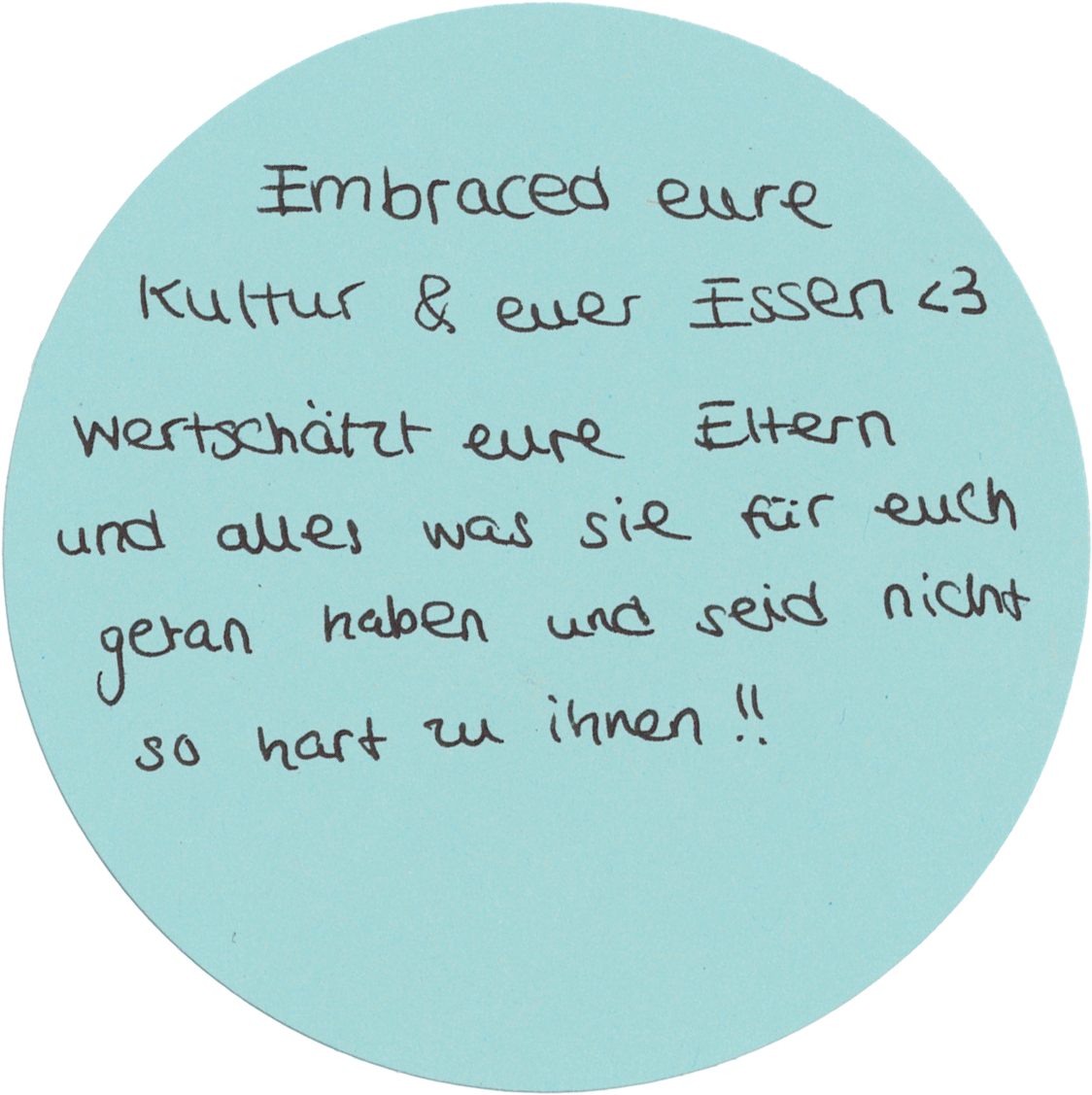 Also meine Mama hat nicht gesagt, ich liebe dich, sondern, hast du schon gegessen.